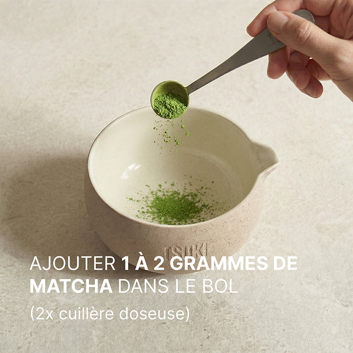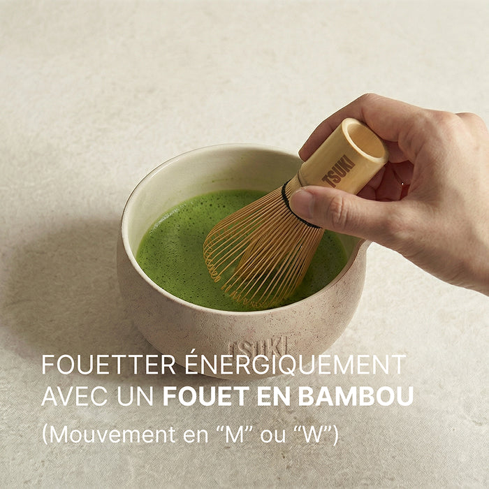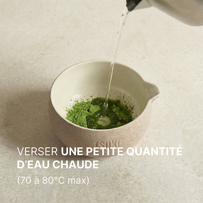 Ce rituel japonais repose sur quelques gestes précis qui révèlent toute la finesse du matcha : une eau à la bonne température, une poudre tamisée et un fouettage énergique pour une mousse légère et onctueuse.